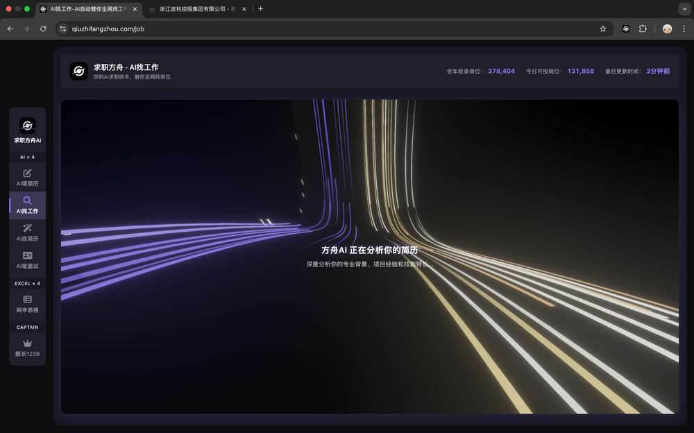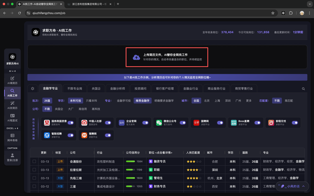 AI找工作 是求职方舟AI 的核心功能,实现 AI替你自动找工作——你只需上传简历,AI 会替你全网自动搜索并筛选适合的岗位,省去在多个平台反复搜索的繁琐。