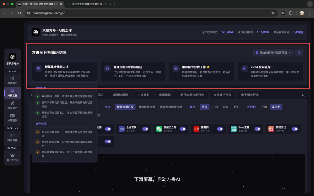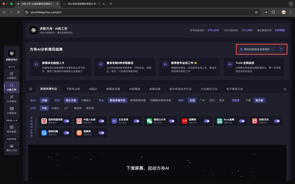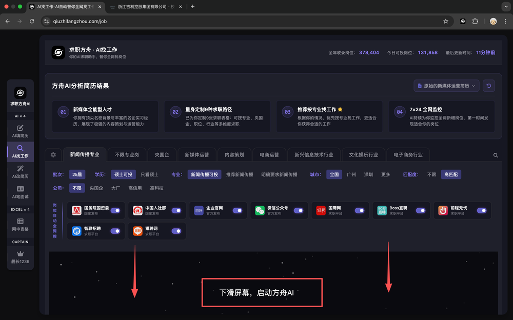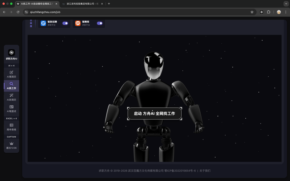 向下滚动页面,启动求职方舟AI机器人。