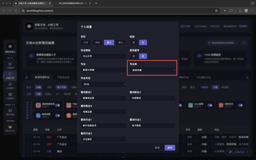 - AI会自动识别你的批次,并根据批次匹配适合的岗位。如有错误,可在个人信息设置弹窗中调整,同时注意你的简历中毕业年份是否正确。