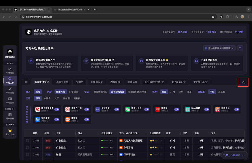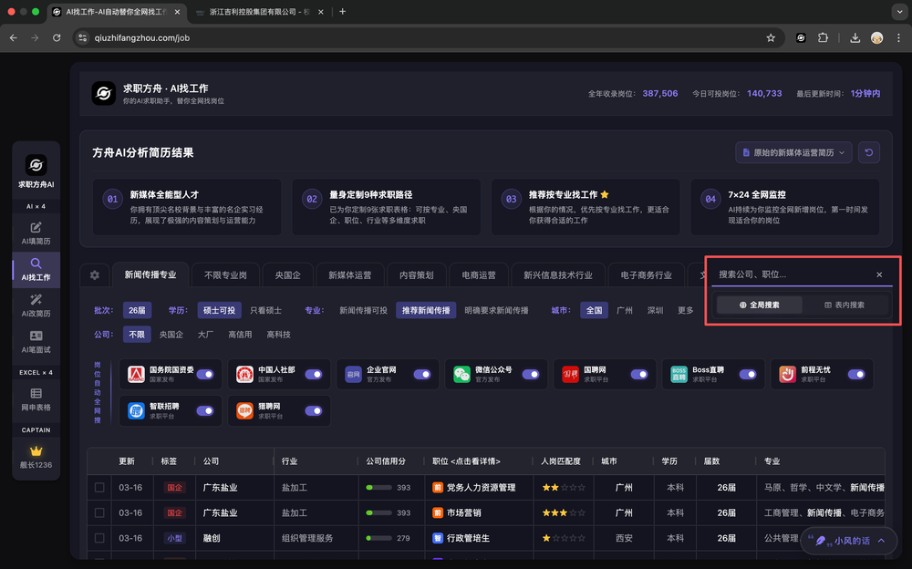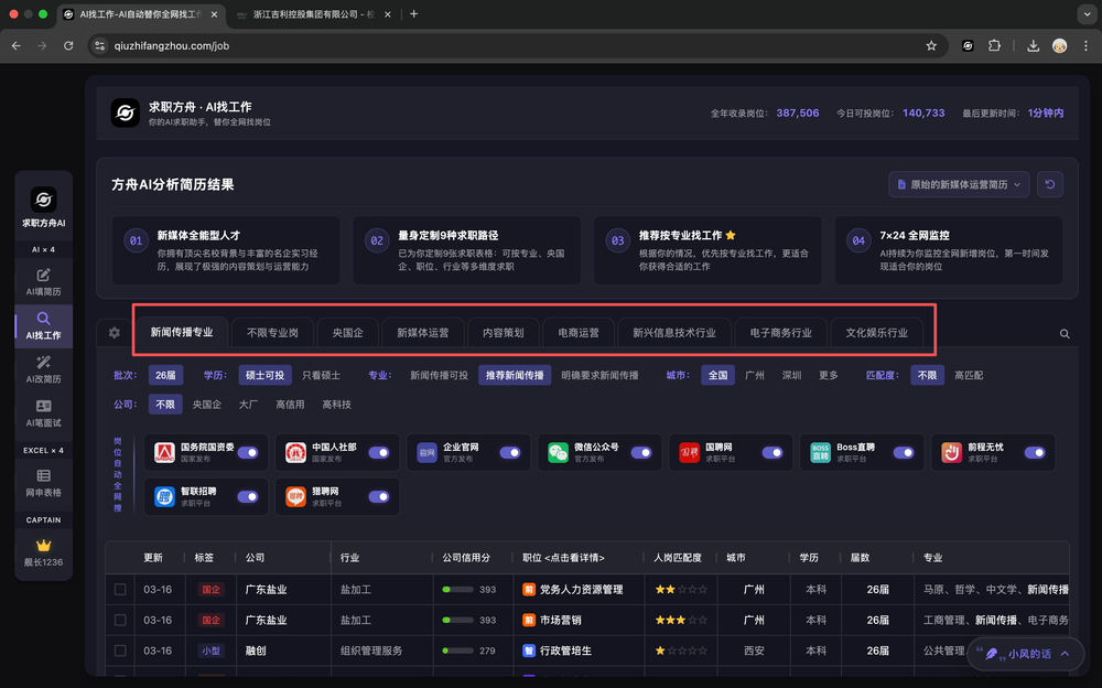 - 适合想进入央国企的求职者。求职方舟AI会搜索包括国资委和人社部,以及全国各地的事业单位的官网,还包括一些知名的大型央国企官网,几乎收罗了所有央国企招聘岗位。